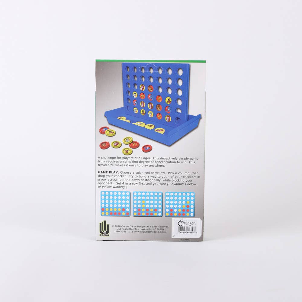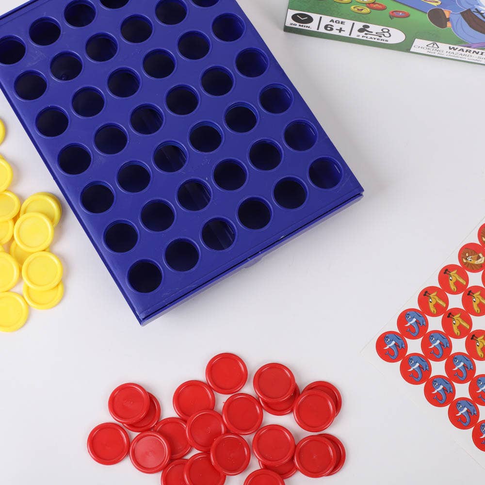 How to Play: Choose a color, red or yellow. Pick a column, then drop your checker. Try to build a way to get 4 of your checkers in a row - across, up and down, or diagonally, all while blocking your opponent. Get 4 in a row first and you win! 2 Player Game for ages 6 and up.
