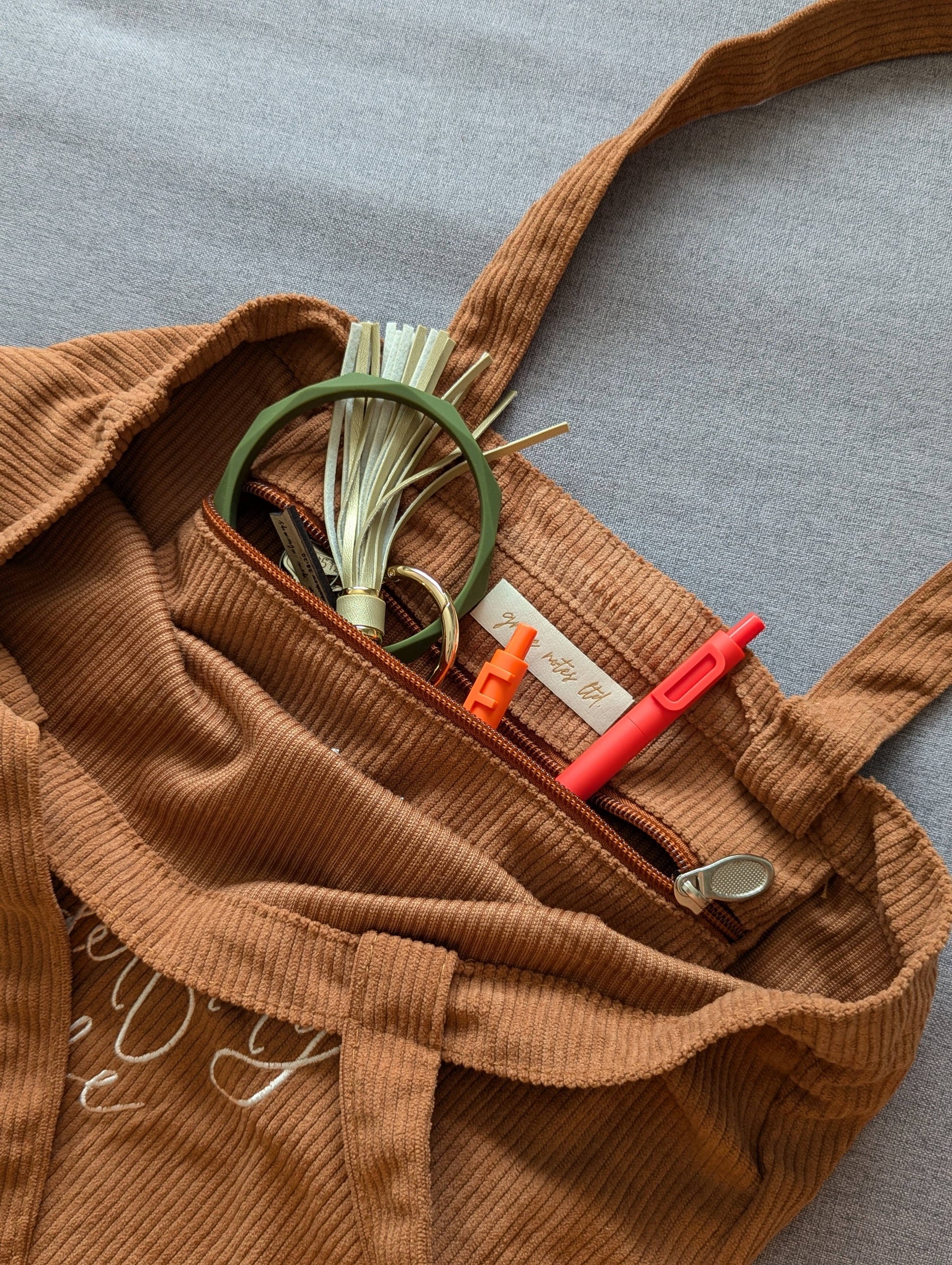 This stylish tote bag is such a needed reminder of your worth and value in the Lord. You were created on purpose for a purpose! Made from corduroy and beautifully embroidered, this bag will hold all of your essentials. Especially with a handy inner zip pocket!